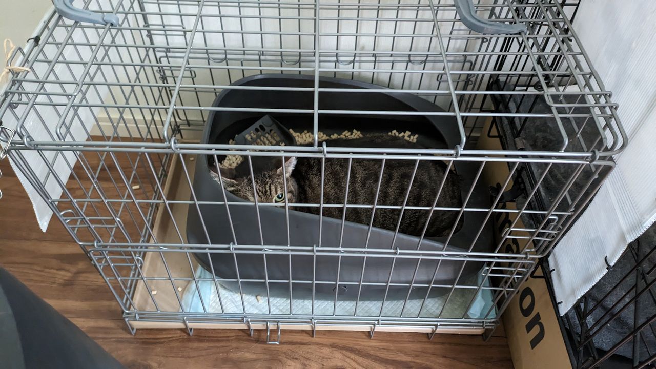 初めてやってきた日は、環境の変化に戸惑ったのか、ケージの中からなかなか出てきませんでした。